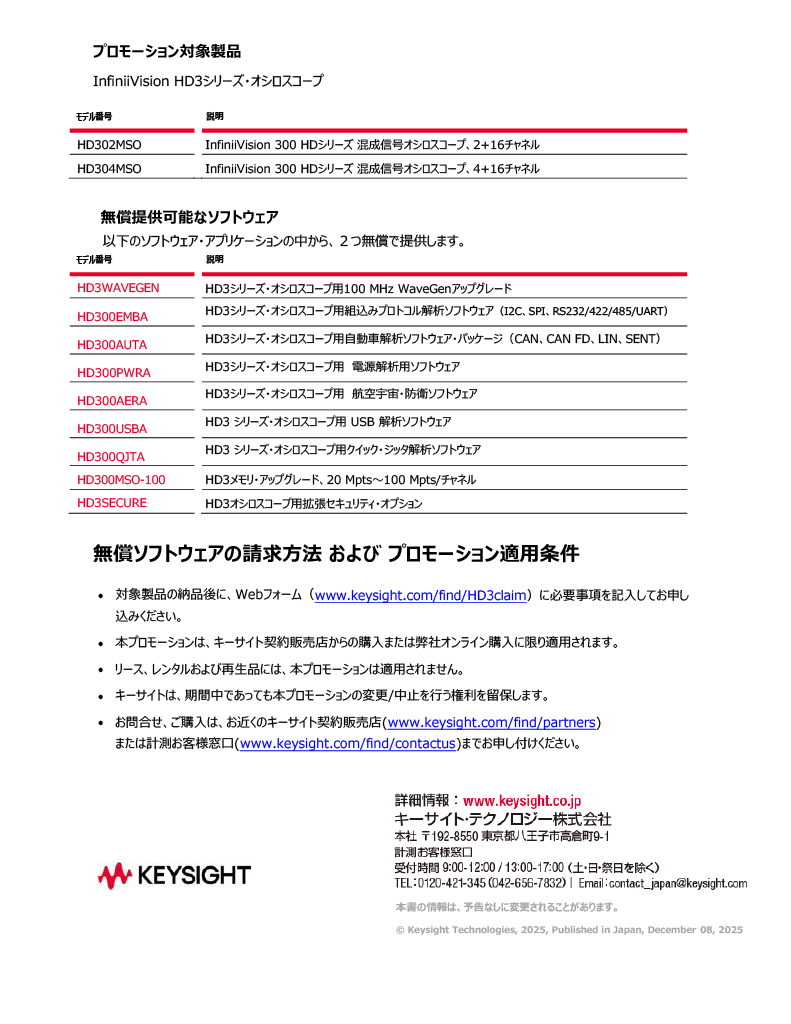 キャンペーン期間内に、HD3シリーズオシロスコープ(2024年9月5日新発売)をご購入いただくと、