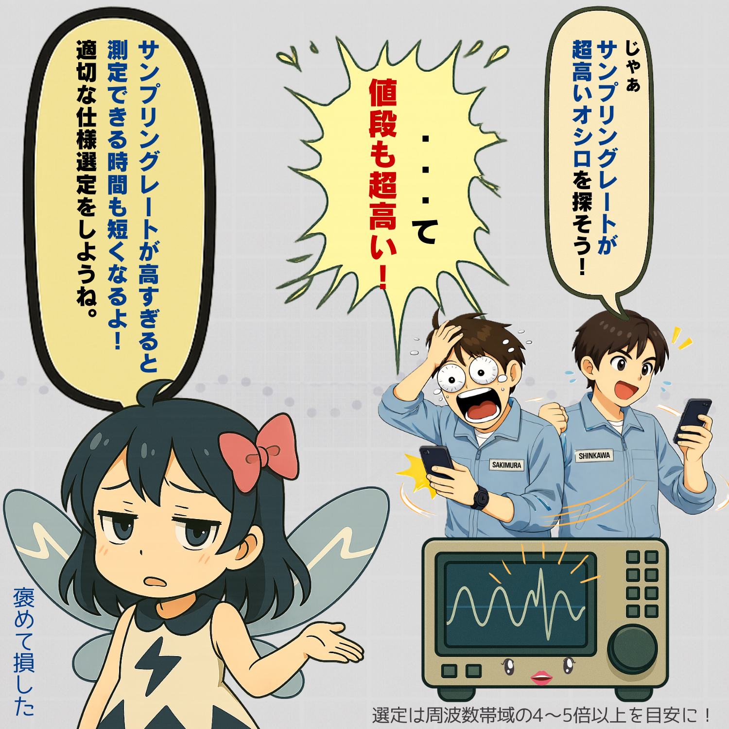 「測りたい信号は50MHzの正弦波だから周波数帯域は10倍あればOK。でもサンプリングレートは、どうしたらいいの?」